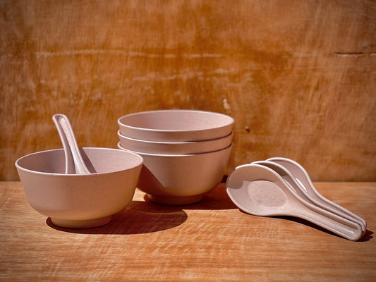 Eco-Friendly, BPA Free, Food Grade Bamboo Soup Bowls with Spoon (Set of 4)